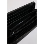 Dolce & Gabbana Black Leather Logo Plaque Zip Around Continental Wallet