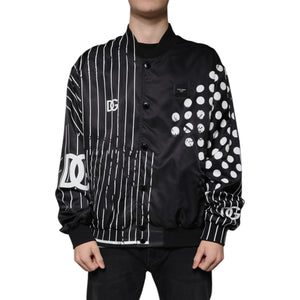 Dolce & Gabbana Black Polka Dot Stripe Nylon Bomber Jacket