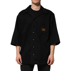 Dolce & Gabbana Black Short Sleeve Button Men Casual Shirt