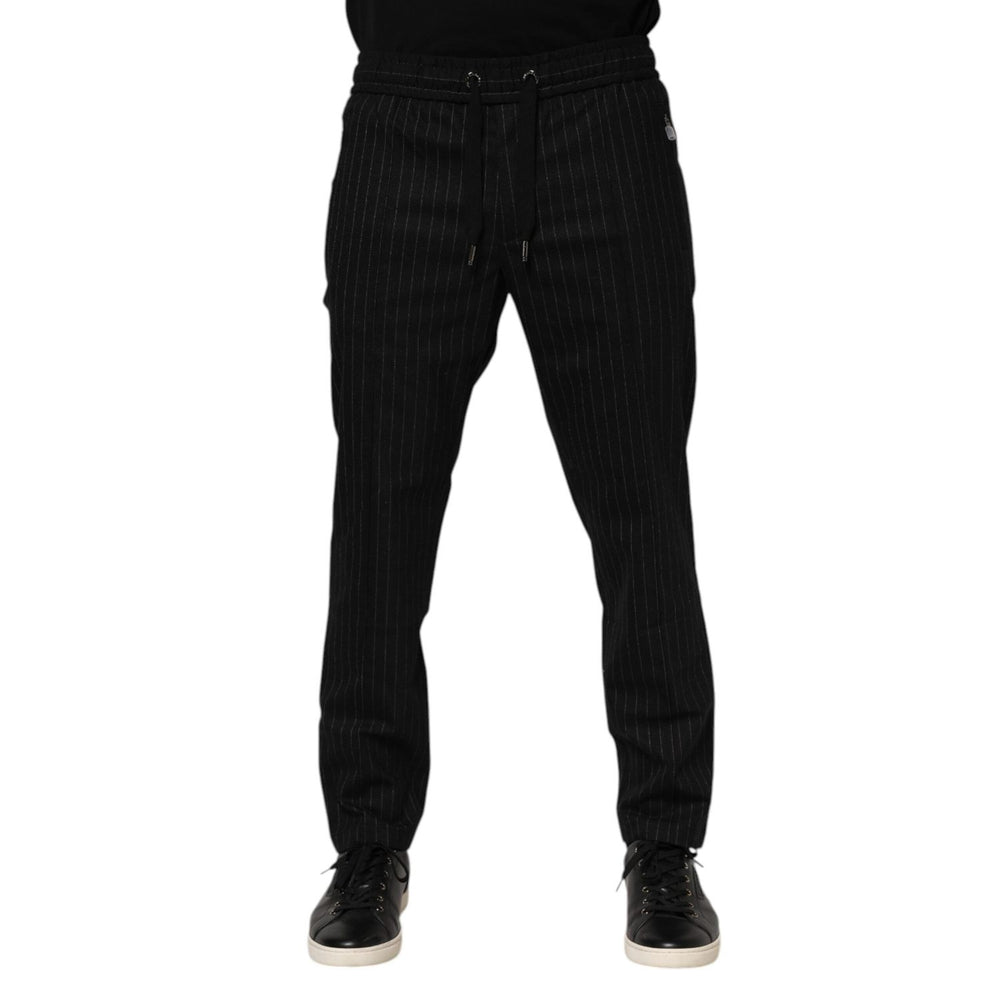 Dolce & Gabbana Black Striped Wool Men Jogger Pants