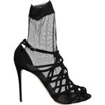 Dolce & Gabbana Black Tulle Stretch Heels Sandals Shoes