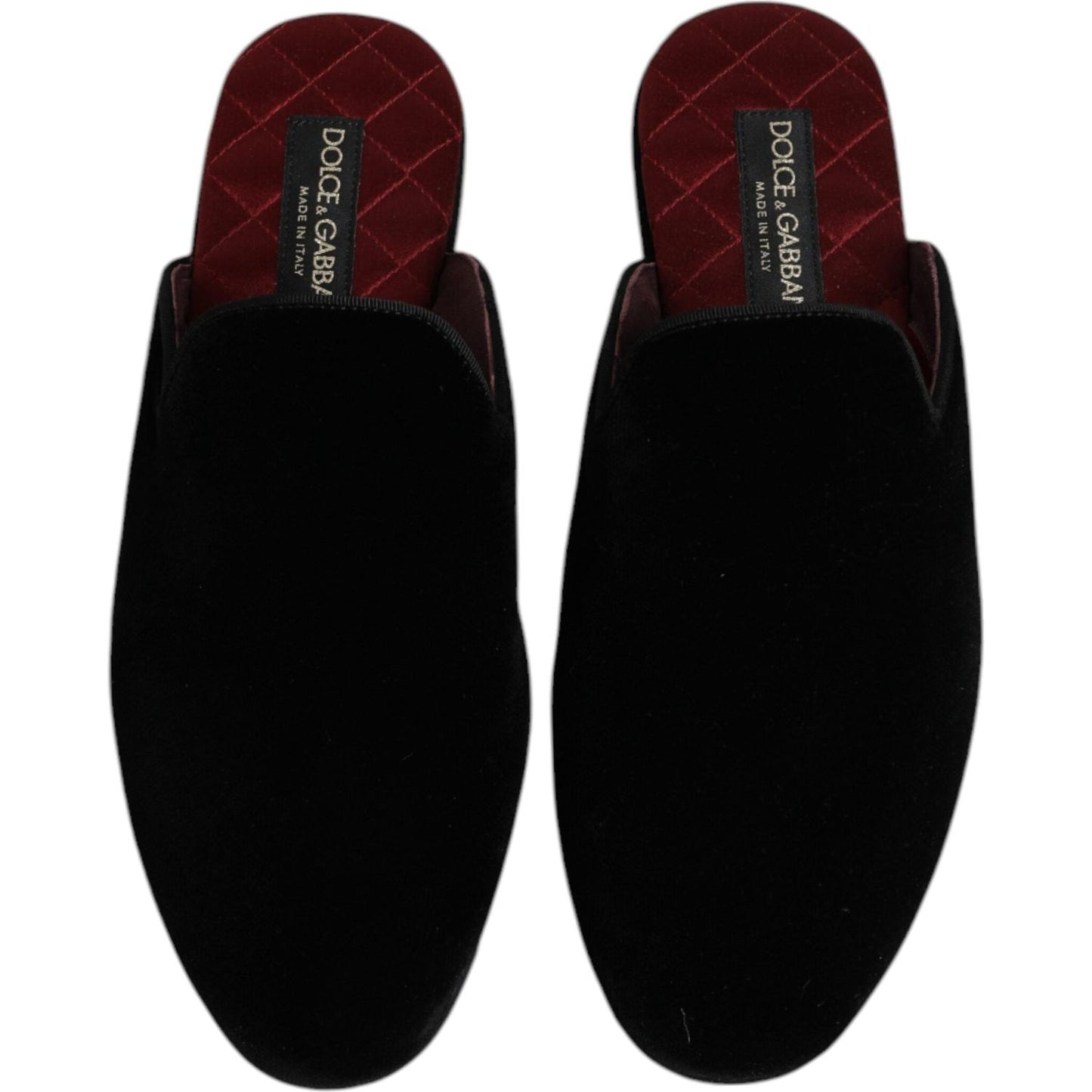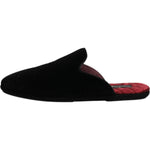 Dolce & Gabbana Black Viscose Velvet Slides Flat Slipper Shoes