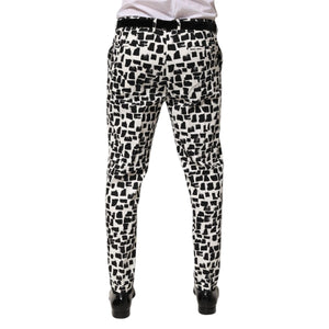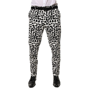 • Dolce & Gabbana Black White Abstract Print Cotton Blend Pants with tailored fit and premium craftsmanship, men's fashion trousers.