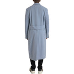 Dolce & Gabbana Blue Double Breasted Long Trench Coat Jacket