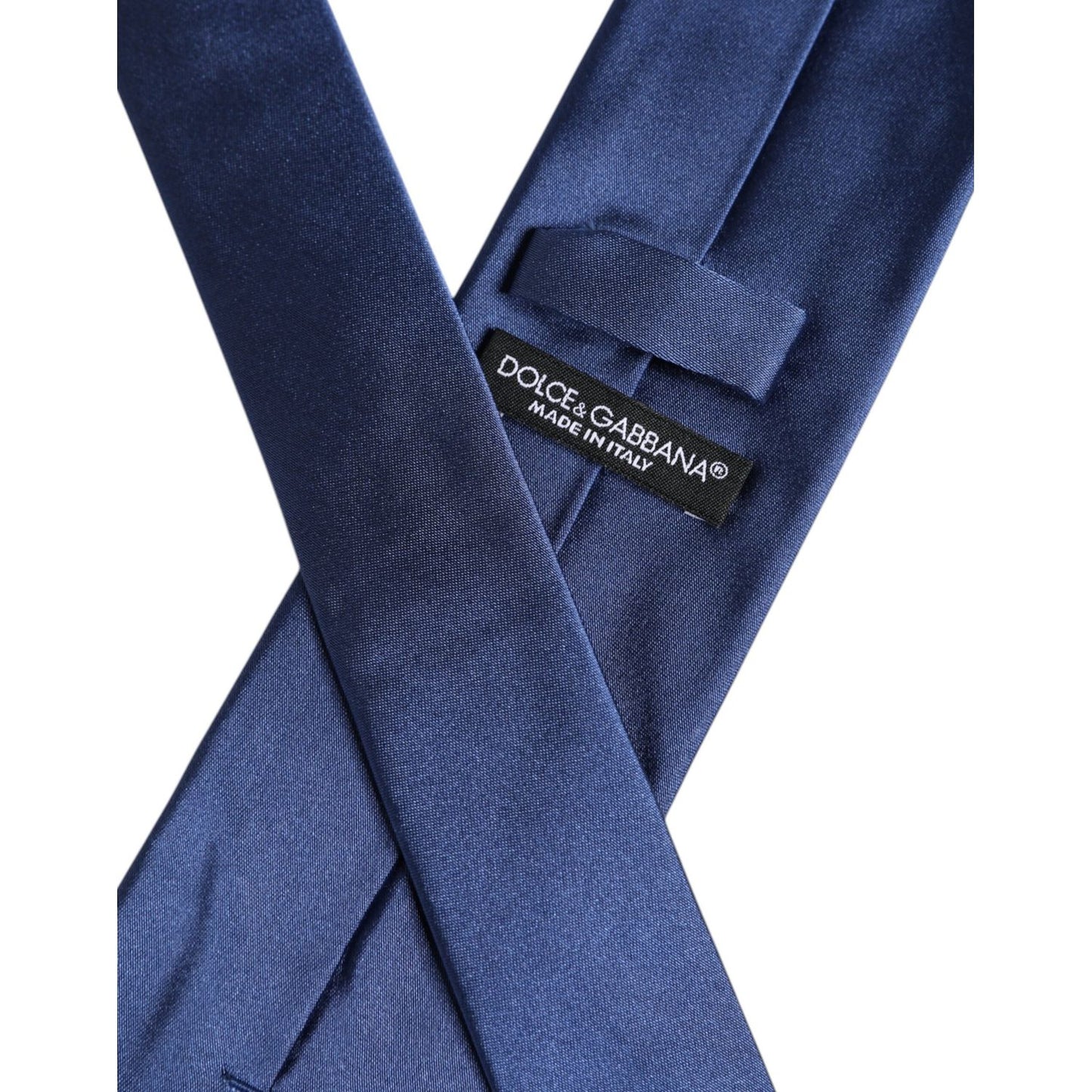 Dolce & Gabbana Blue Solid Silk Adjustable Necktie Tie