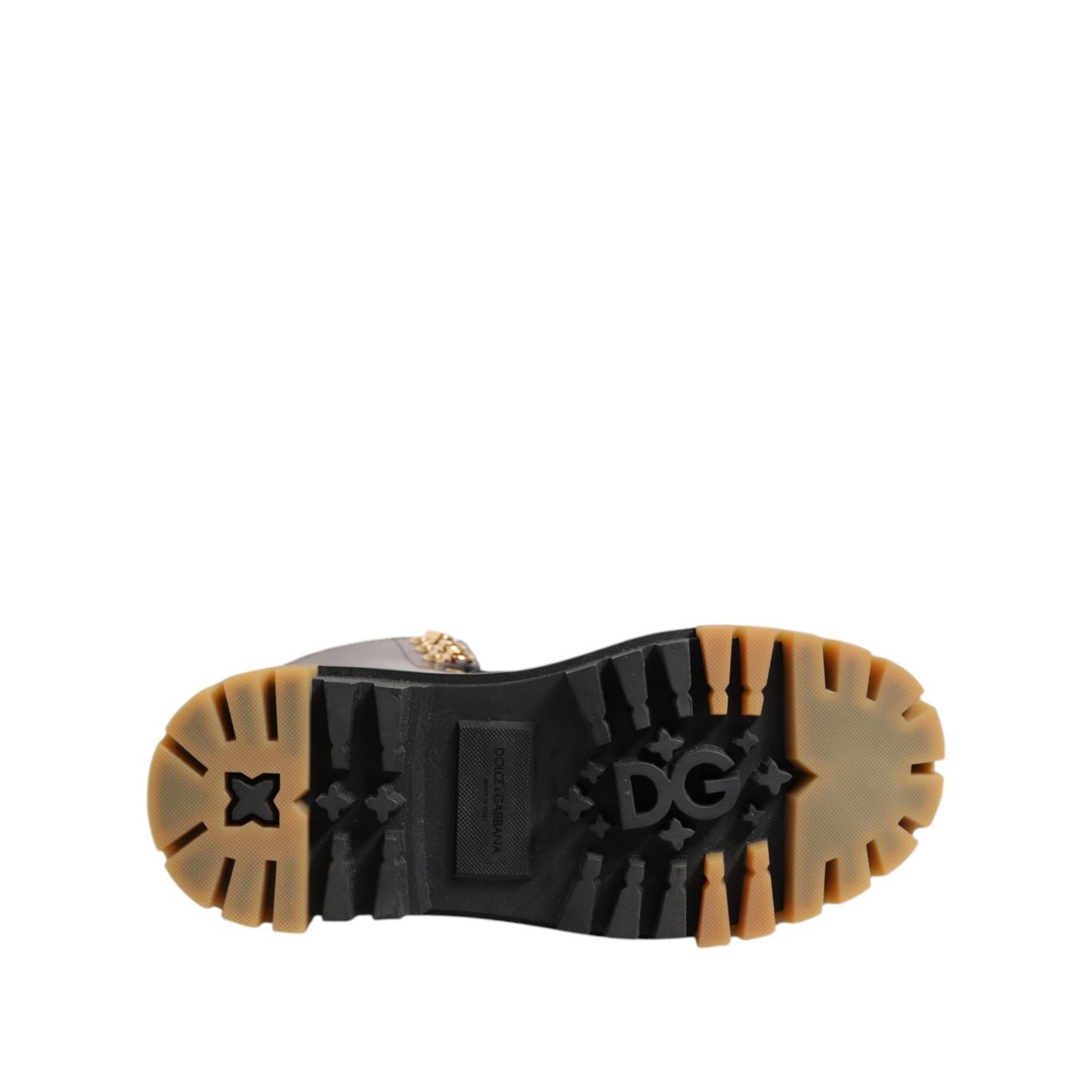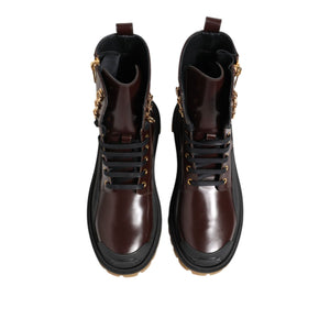 Dolce & Gabbana Brown Black Leather Boots Zipper Lace Up Shoes