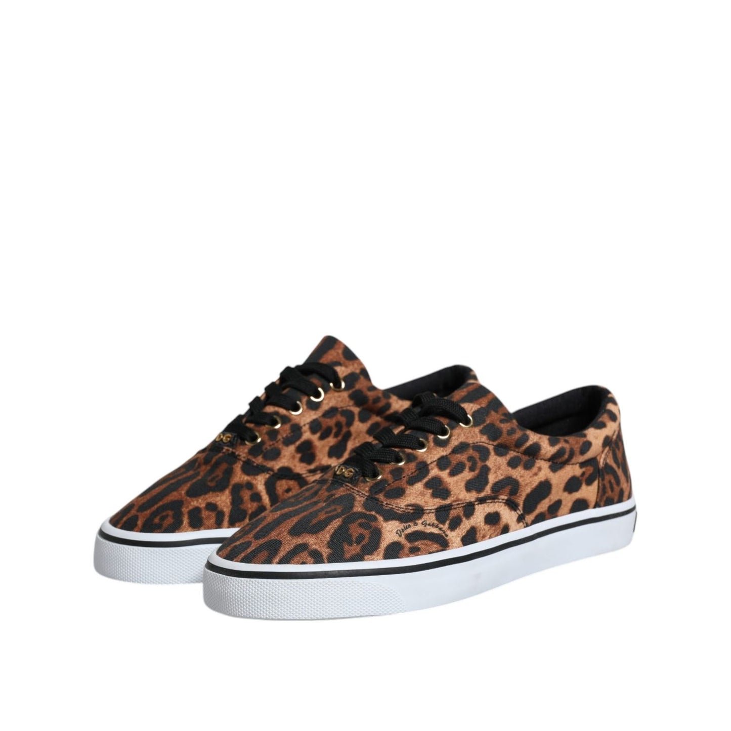 Dolce & Gabbana Brown Leopard Logo Print Cotton Sneakers Shoes