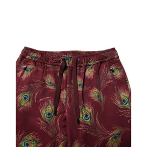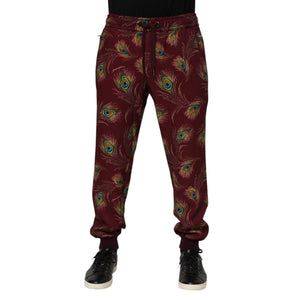 Dolce & Gabbana Burgundy Peacock Feather Print Jogger Pants