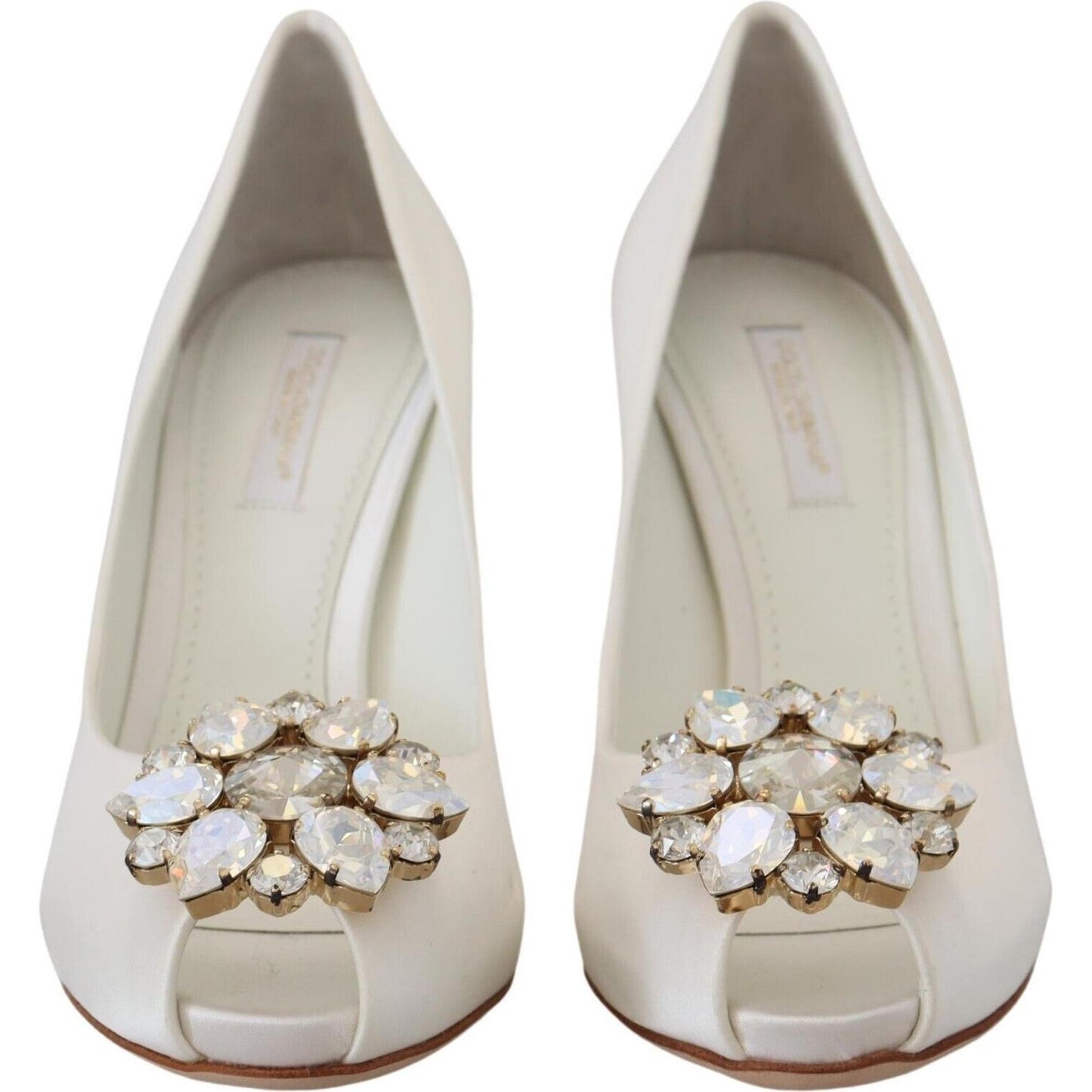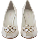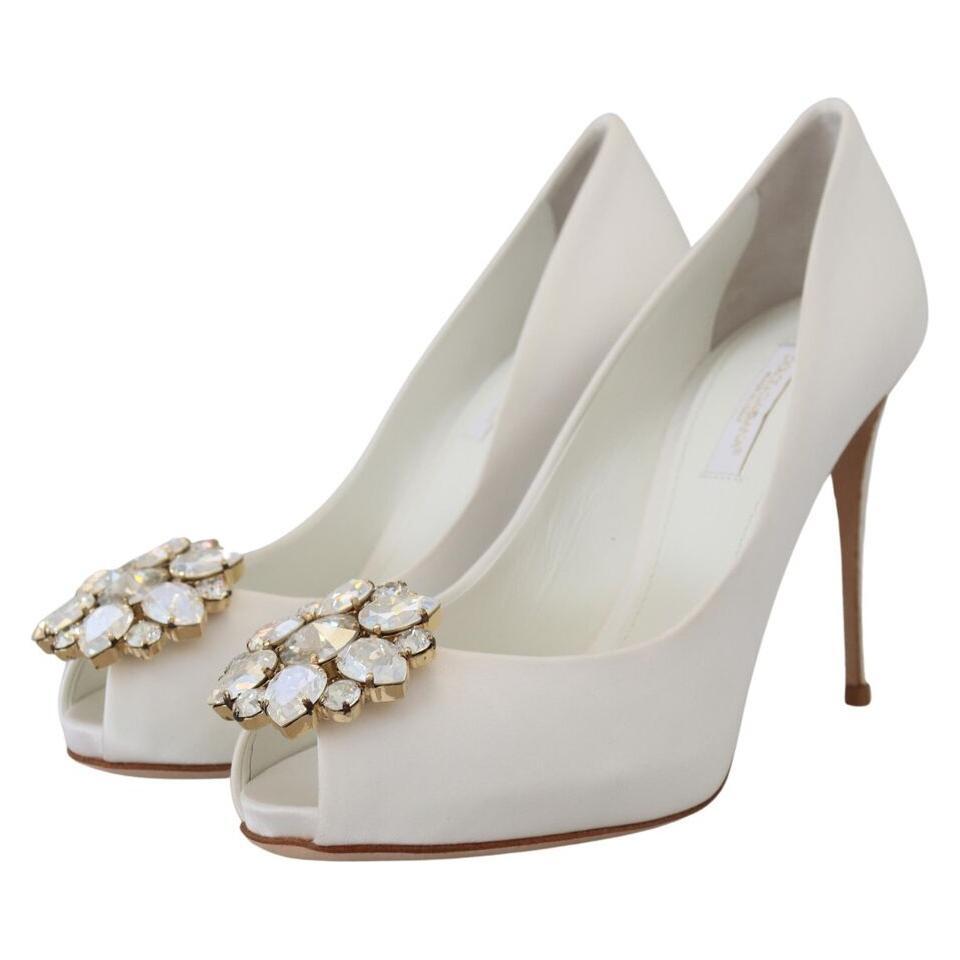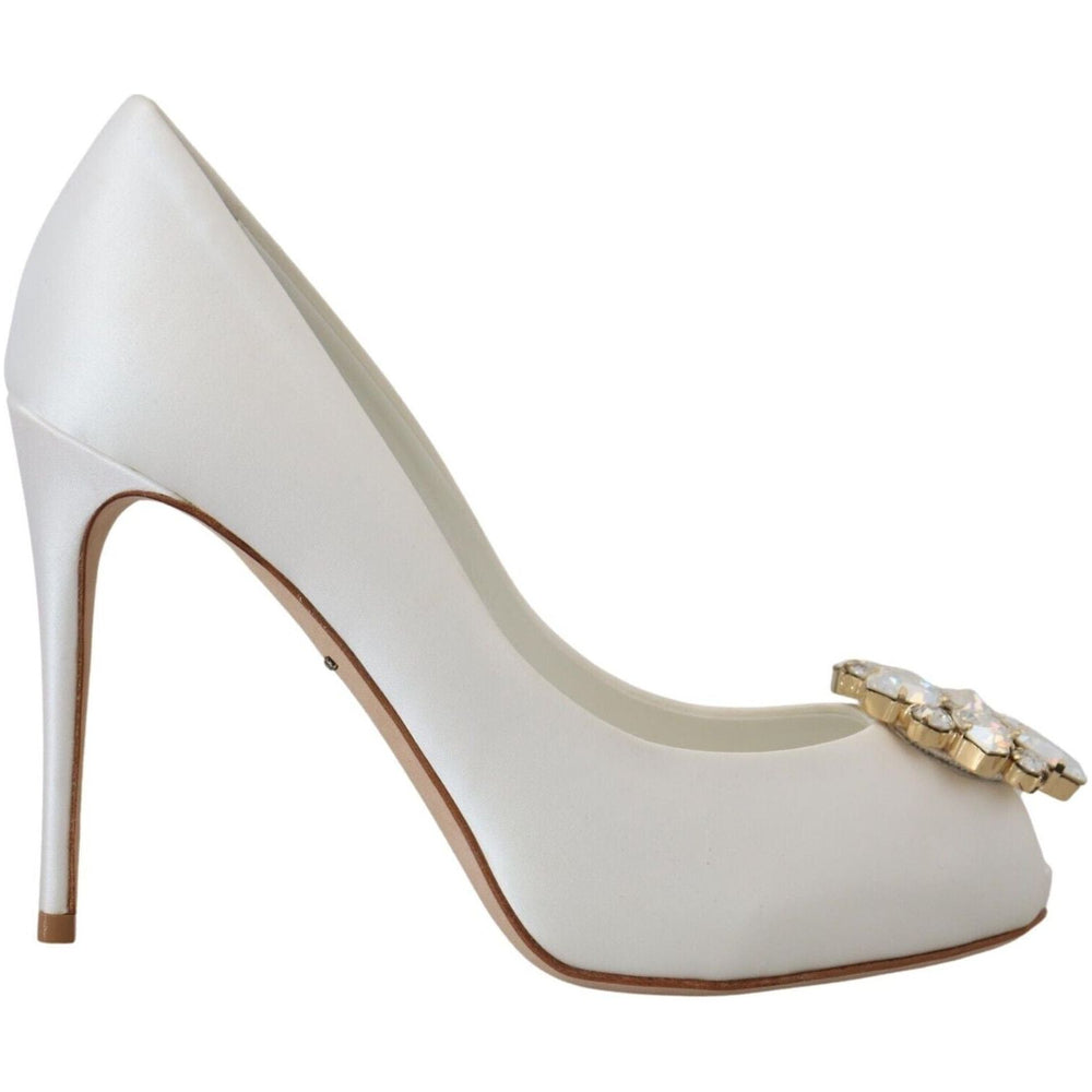 Dolce & Gabbana White Crystals Peep Toe Heel Satin Pumps