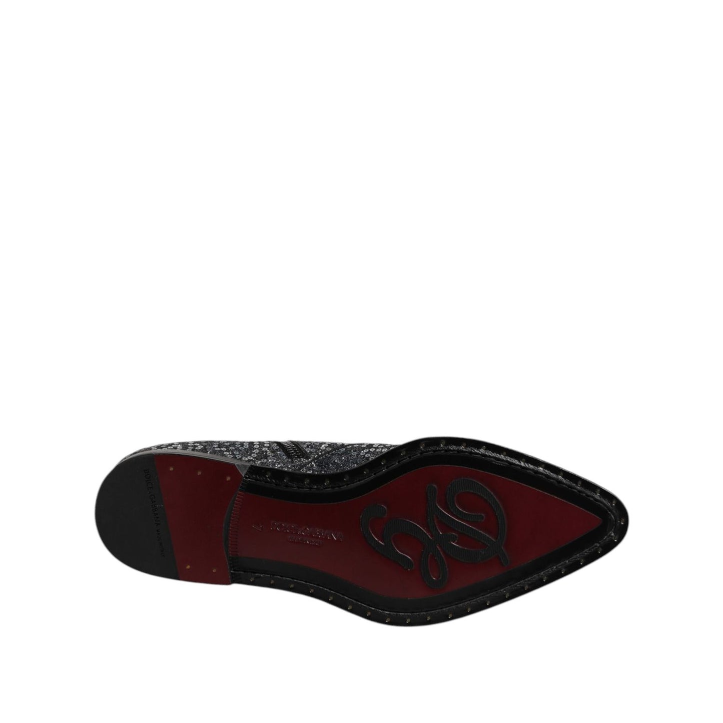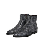 Dolce & Gabbana Dark Gray Cotton Sequined Chelsea Boots Shoes