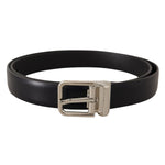 Dolce & Gabbana Black Calf Leather Silver Metal Logo Buckle Belt