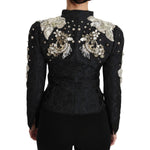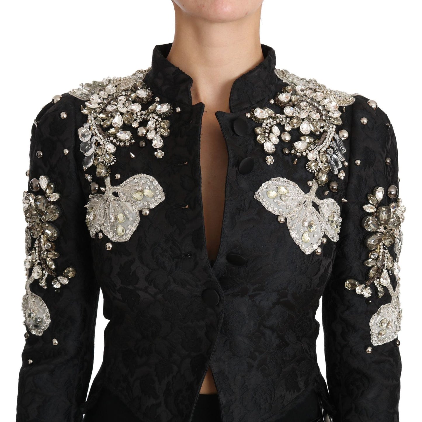 Dolce & Gabbana Black Jacquard Crystal Floral Jacket