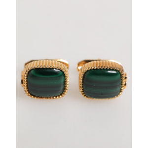 Dolce & Gabbana Gold Malachite Green Stone Square Men's Accessory Cufflink