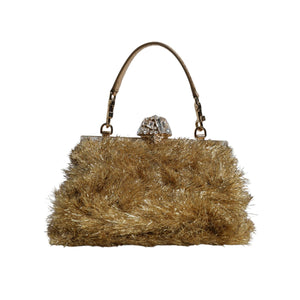 Dolce & Gabbana Gold Vanda Chain Strap Tinsel Crystal Evening Clutch Bag