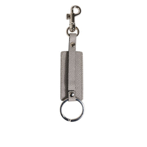Dolce & Gabbana Gray Leather Logo Metal Ring Keychain Holder Keyring