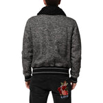 Dolce & Gabbana Gray Wool Herringbone Shearling Collar Bomber Jacket