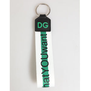Dolce & Gabbana Green Logo Polyester Silver Brass Holder Keychain Keyring