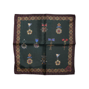 Dolce & Gabbana Green Medals Silk Square Foulard Scarf