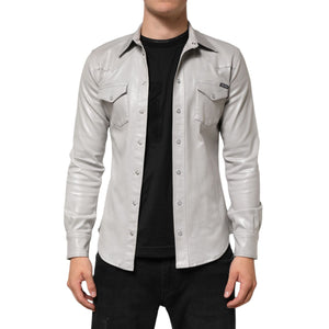 Dolce & Gabbana Metallic Gray Cotton Button Down Men Shirt