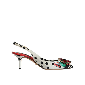 Gorgeous 100% Authentic Dolce & Gabbana leather slingback heels pumps with polka dots and floral print and crystal embellishment.