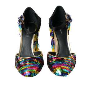 Dolce & Gabbana Multicolor Sequin Crystal Mary Jane Shoes