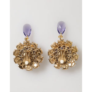 Dolce & Gabbana Purple Floral Crystal Pearl Drop Clip-On Statement Earrings