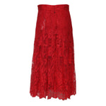 Dolce & Gabbana Red Cotton Floral Lace A-line Long Maxi Skirt
