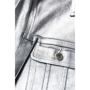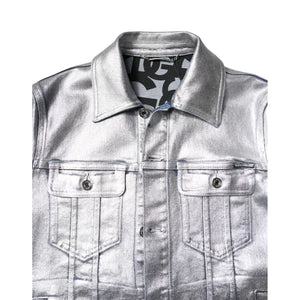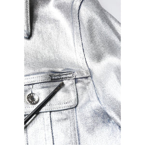 Dolce & Gabbana Silver Cotton Button Down Denim Biker Jacket