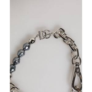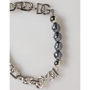 Dolce & Gabbana Silver Tone Chain Lobster Clasp Logo Gray Pearls Bracelet with elegant design and signature DG logo details.