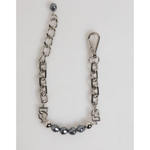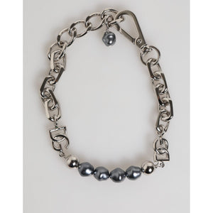 Dolce & Gabbana Silver Tone Chain Lobster Clasp Logo Gray Pearls Bracelet with metal links and DG logo details