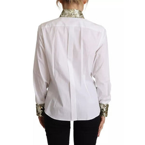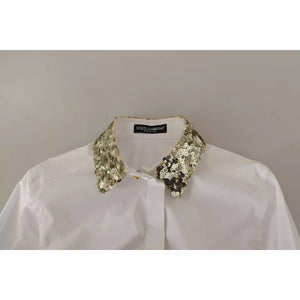 Dolce & Gabbana White Cotton Collared Long Sleeves Sequin Top Shirt