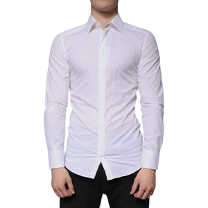 Dolce & Gabbana White Cotton Long Sleeve GOLD Dress Shirt
