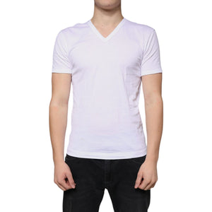 Dolce & Gabbana White Cotton V-neck Short Sleeves T-shirt