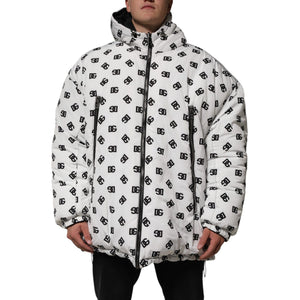 Dolce & Gabbana White DG Monogram Hooded Puffer Jacket