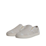 Dolce & Gabbana White Floral Lace Slip On Loafers Shoes