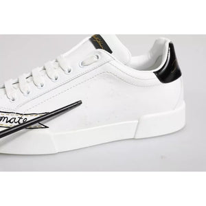 Dolce & Gabbana White Leather Low Top Lace Up Sneakers Shoes