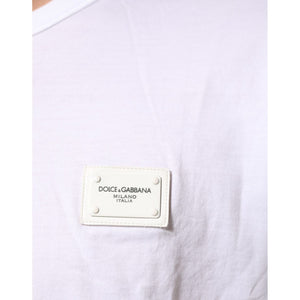 Dolce & Gabbana White Logo Plaque Cotton Crew Neck T-shirt