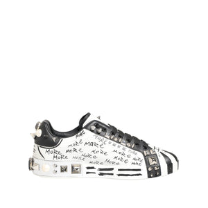 Dolce & Gabbana White Studded Printed Low Top Sneakers Shoes