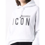 White cotton Icon-print cotton hoodie from DSQUARED2 featuring logo print to the front, signature Icon motif, drawstring hood, drop shoulder, elasticated cuffs, long sleeves and elasticated hem. Icon cotton hoodie Size and Fit - This piece fits true to size. We recommend you get your regular size. Model is 1,75m / 5ft 8in wearing size S