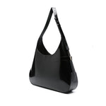 black, red leather patent finish tonal stitching adjustable shoulder strap contrasting panel detail asymmetrical pocket to the front Gancini buckle main compartment internal zip-fastening pocket internal logo tag full lining gold-tone hardware open top with magnetic strap fastening This piece comes complete with a protective dust bag. Size and Fit - Width 21,65 in / 55 cm