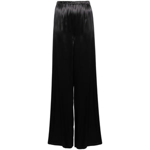 black satin finish crepe texture high-waisted elasticated waistband wide leg straight hem long length Satin wide leg trousers Size and Fit - This piece fits true to size. We recommend you get your regular size. Model is 1,75m / 5ft 8in wearing size 40 (IT)