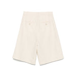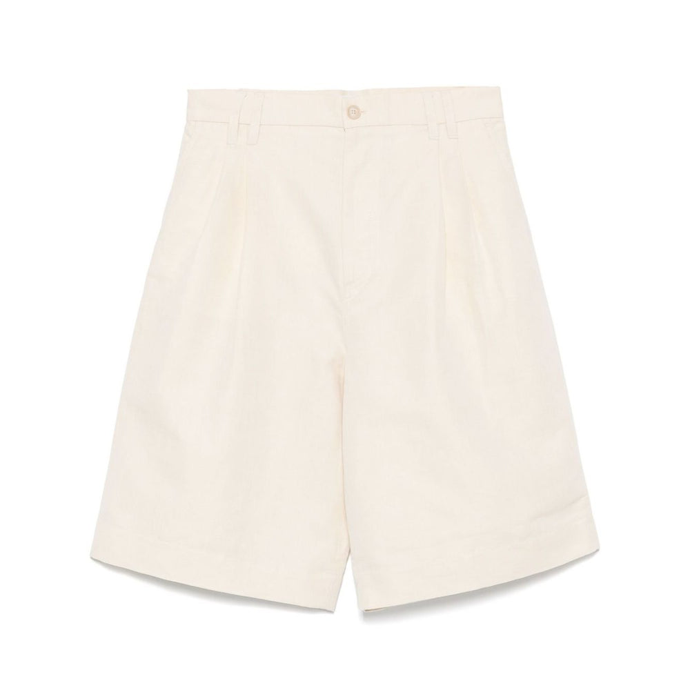 light beige front button and zip fastening belt loops two side slash pockets two rear welt pockets Linen and cotton blend shorts Size and Fit - This piece fits true to size. We recommend you get your regular size. Model is 1,75m / 5ft 8in wearing size 36 (FR)