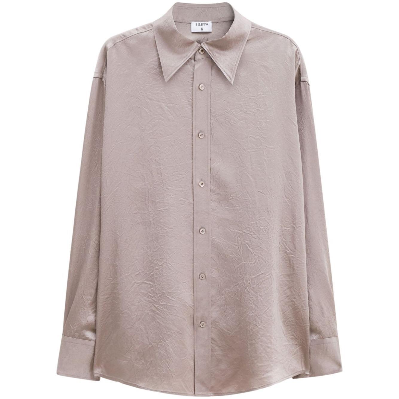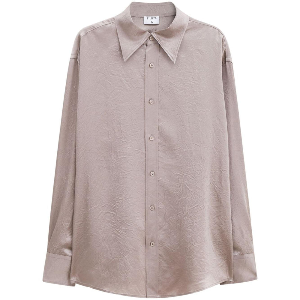 sand beige Naia™ cellulosic fibres crinkled finish front button fastening oversized pointed collar long sleeves buttoned cuffs rear pleat detailing curved hem Long-sleeves shirt Size and Fit - This piece fits true to size. We recommend you get your regular size. Model is 1,75m / 5ft 8in wearing size 36 (FR)