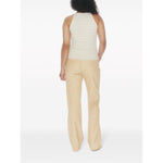 dark yellow/chalk white organic cotton fine ribbed horizontal stripe print embroidered monogram to the front halterneck sleeveless racerback straight hem This item is made from at least 50% organic materials. Learn more about what makes a product Conscious on our Conscious Criteria page Striped tank top Size and Fit - This piece fits true to size. We recommend you get your regular size. Model is 1,75m / 5ft 8in wearing size S