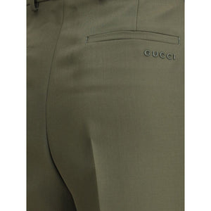 The Gucci boyfriend Trousers, crafted from a refined wool and mohair blend, reinterpret masculine tailoring with effortless sophistication. A relaxed cut and split hem lend the piece a modern character, designed for a femininity that moves with natural elegance. Belt loops, two side pockets, and two back pockets complete the classic construction, while the Gucci embroidered logo on the left back pocket serves as a subtle signature detail. Finished with a hook-tab and zip closure, the trousers embody the Maison’s impeccable sartorial precision.