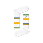 Discover the Happy Socks COLORS CUFF THIN CREW SOCK ATCCF29 women’s socks, perfect for adding a touch of style and vibrancy to your everyday look. Crafted from a high-quality blend of 75% cotton, 23% polyamide, and 2% elastane, these socks ensure comfort, breathability, and a snug fit that adapts perfectly to your foot. The design features a thin ribbed texture with a colorful striped elastic cuff and a small lightning bolt embroidery, adding a unique and modern twist. Ideal for all seasons, they pair effortlessly with both casual and sporty outfits, offering a blend of comfort and personality to elevate any ensemble.