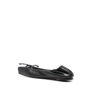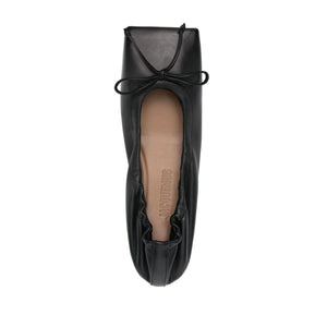 black calf leather smooth grain slip-on style elasticated trim front bow detailing square toe branded leather insole flat leather sole This piece comes complete with a protective dust bag. Les Ballerines Ballet Size and Fit - Heel 1 cm