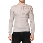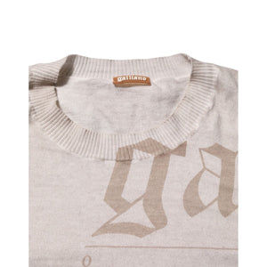John Galliano Beige Printed Logo Roundneck Long Sleeves Men Sweater