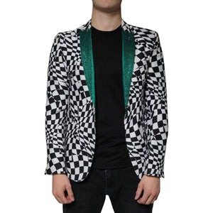 John Richmond Black White Checkered Crystal Single Breasted Blazer
