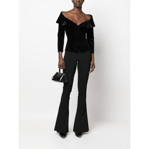 Bardot-neckline long-sleeve jacket from NORMA KAMALI featuring jet black, velvet, Bardot neckline, concealed front fastening, long sleeves and straight hem. Single-breasted blazer jacket Size and Fit - This piece fits true to size. We recommend you get your regular size. Model is 1,75m / 5ft 8in wearing size S